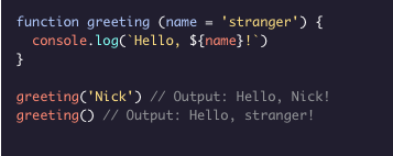 A default parameter can be set on a function to use in the event that no value is passed in. This looks like this: