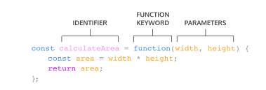 - Function Expressions - functions can also be declared using variables in a manner called function expressions. This usually uses the const var keyword,